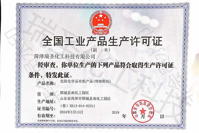 瑞圣化工資質證書展示
